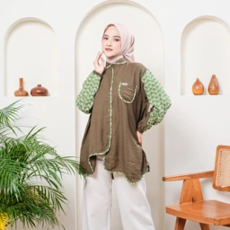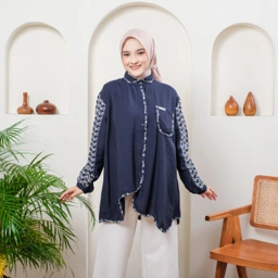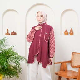 Evollet Cellina Kemeja Atasan Wanita dengan lengan panjang dan detail motif elegan. Kemeja oversize berbahan Linen Arabia Mix Bordir Two Tone. Lingkar dada hingga 120 cm. Tersedia 5 warna: Navy, Army, Pink, Maroon & Terracotta.