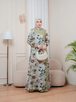 Evollet Sivinna Dress, gamis menawan untuk Muslimah kreatif dengan detail motif bunga yang cantik. Gamis ini berbahan Organza Diamond & Yoris. Tersedia dalam 2 ukuran dan 5 warna: Green, Dusty Pink, Purple, Mocca & Peach