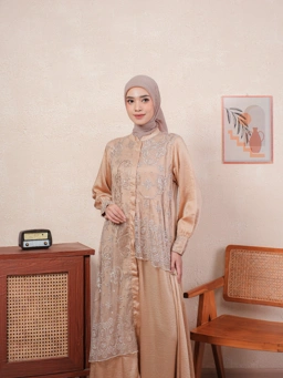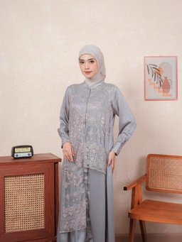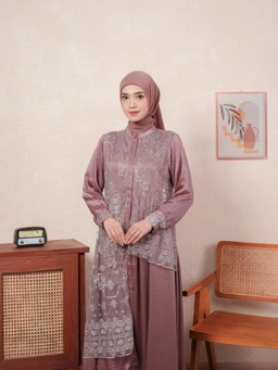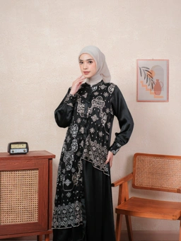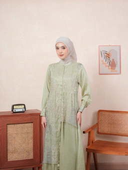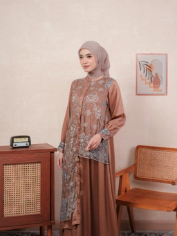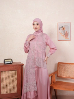 Evollet Synci Dress, Gamis Trendi untuk Muslimah Mandiri dengan detail motif elegan. Gamis ini berbahan Tropical Silk mix Embroidery. Tersedia dengan 2 ukuran dan 5 warna: Navy, Army, Pink, Maroon & Terracotta.